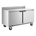 With a spacious stainless steel worktop surface for slicing, dicing, assembling, mixing, and other food prep tasks, the unit features a 3 1/2" backsplash for wall protection and freezer storage space below.