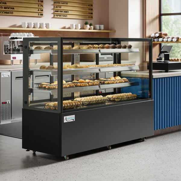 This bakery display case features ultra-clear glass and bright, cool LED lighting that is designed to show off your baked goods! With a proper display, your bakery items can merchandise themselves and increase impulse sales.