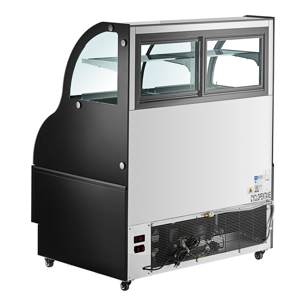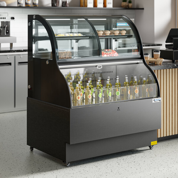 Attractively present your fresh baked goods with this Avantco CAC-48 47 3/16" black curved dual service refrigerated open display merchandiser.