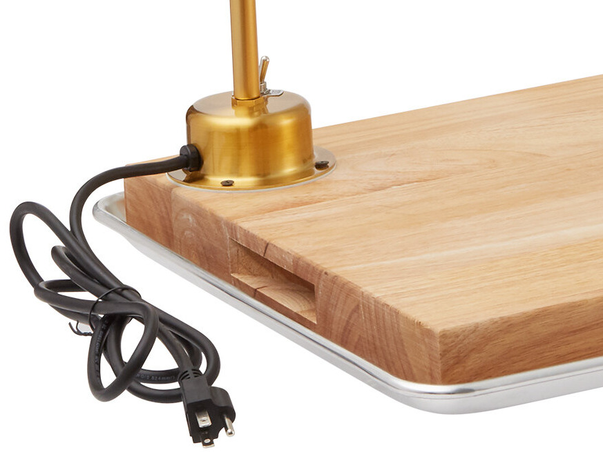 This lamp is great for use with carving stations at hotels, banquet halls, or catered events. It gives you a range of heating options thanks to its flexible body that may be lowered toward, or raised away from foods with ease. It also provides a clear view of what you're doing, which helps to ensure precise cuts when working on your delicious meats and other product.