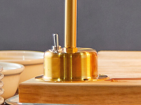 - Drilled stainless steel shade with an attractive gold finish