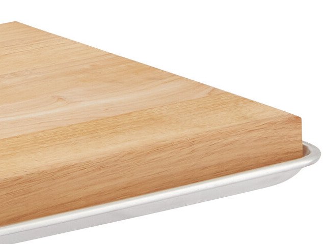 The cutting board, which is made from durable wood to resist deep scratches, is reversible for a longer service life. It is sturdy enough to be used with your biggest knives. At 24" long and 16" wide, you'll have plenty of space to work on.