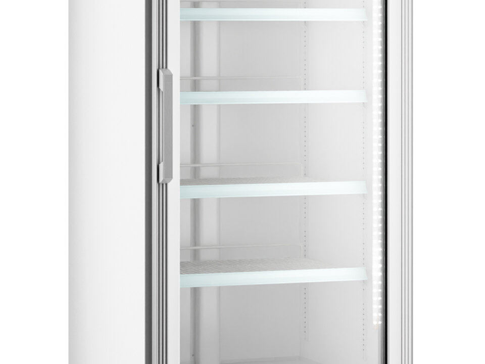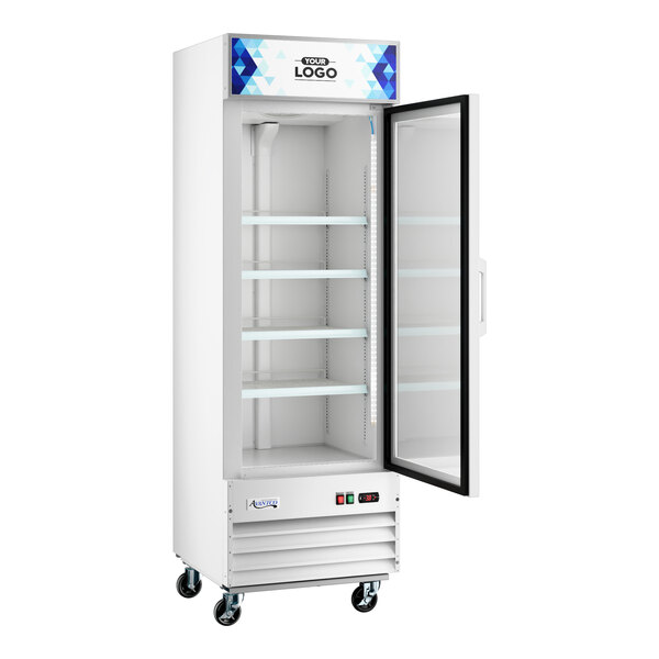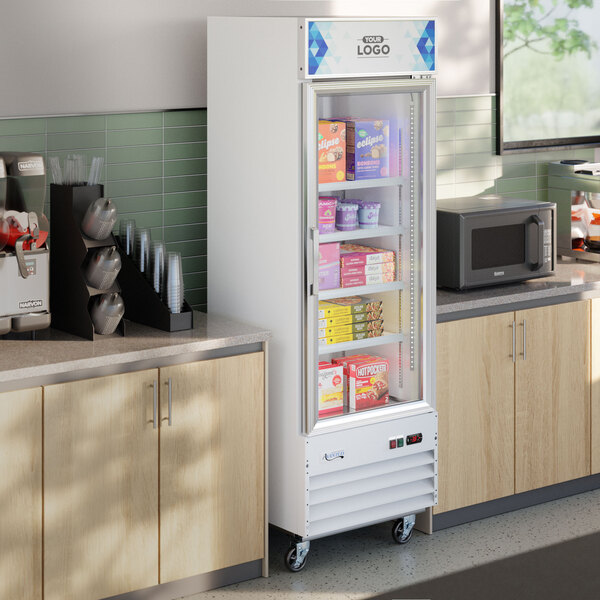 - Item #: 178gdc12fwcAvantco GDC-12F-HC 27 1/8" White Swing Glass Door Merchandiser Freezer with LED Lighting and Customizable Panel