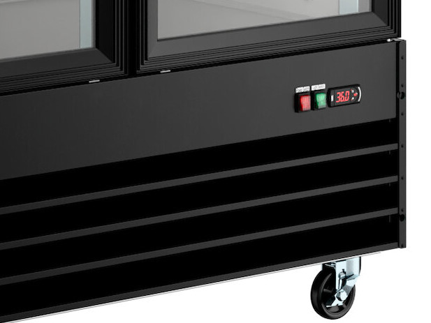 - 2 self-closing, anti-fog swing glass doors; great for displaying prepackaged food and drinks