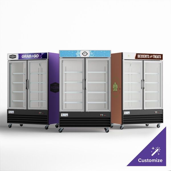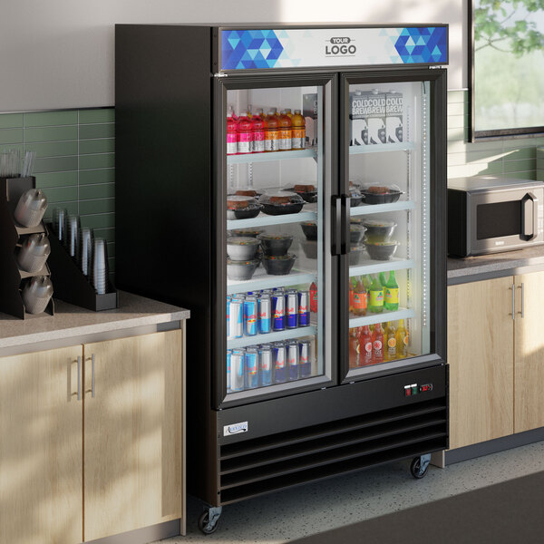 - Item #: 178gdc49bcAvantco GDC-49-HC 53" Black Swing Glass Door Merchandiser Refrigerator with LED Lighting and Customizable Panel