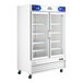 Avantco GDC-49F-HC 53 1/8" White Swing Glass Door Merchandiser Freezer with LED Lighting and Customizable Panel