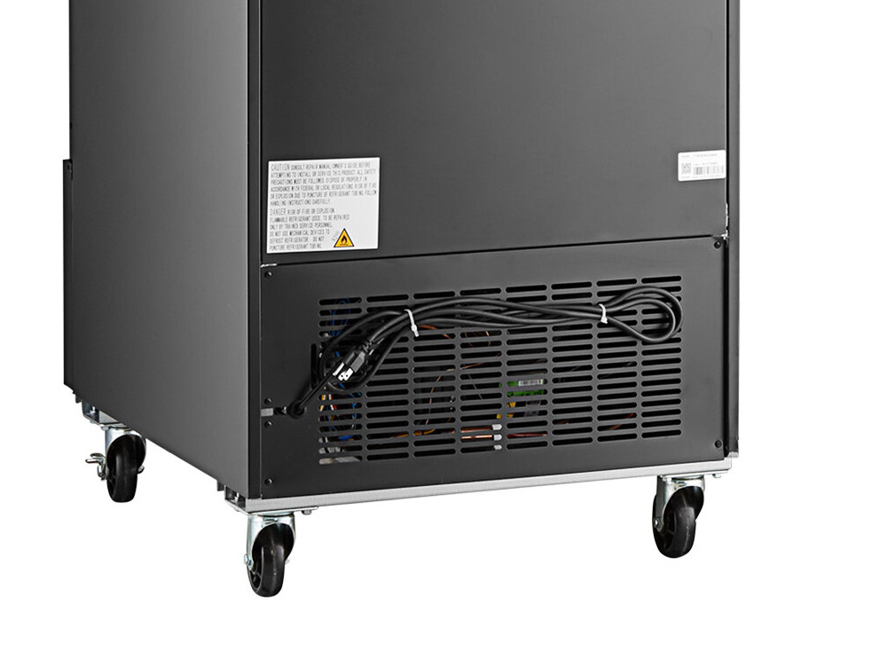 The crisp LED lighting cleanly illuminates your bottles and combines with a self-closing, anti-fog swing glass door for optimum merchandising effect. Plus, a customizable top panel allows you to draw customers' attention to your product. This wine refrigerator requires a 115V connection for operation.
