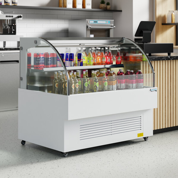 Having an air curtain merchandiser is sure to boost your impulse sales, because customers can clearly see the products you're offering and easily select products of their choosing. This merchandiser keeps contents at safe holding temperatures and allows customers to choose their items from the case while staff members work on other important tasks.