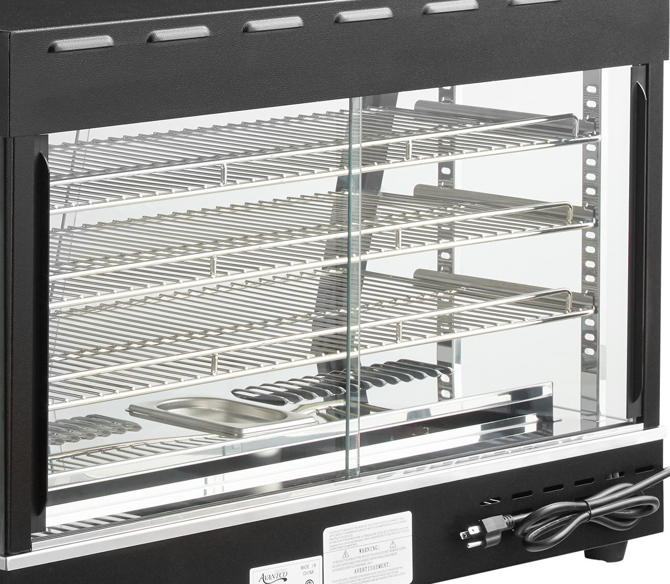 We use Avantco equipment as we can. Very good quality for a very good price. We never complain about that. The warmer display work very well, the slidign door are good and close right.