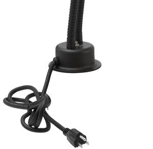 This heat lamp can warm baked goods, fried foods, carving station meats, and other delicious foods. Simply contort its flexible arms into position, lowering them toward or raising them away from food as needed. The lamp's attractive finish and drilled stainless steel shade will complement any decor, seamlessly blending into your front-of-house cooking area, buffet, or other space.