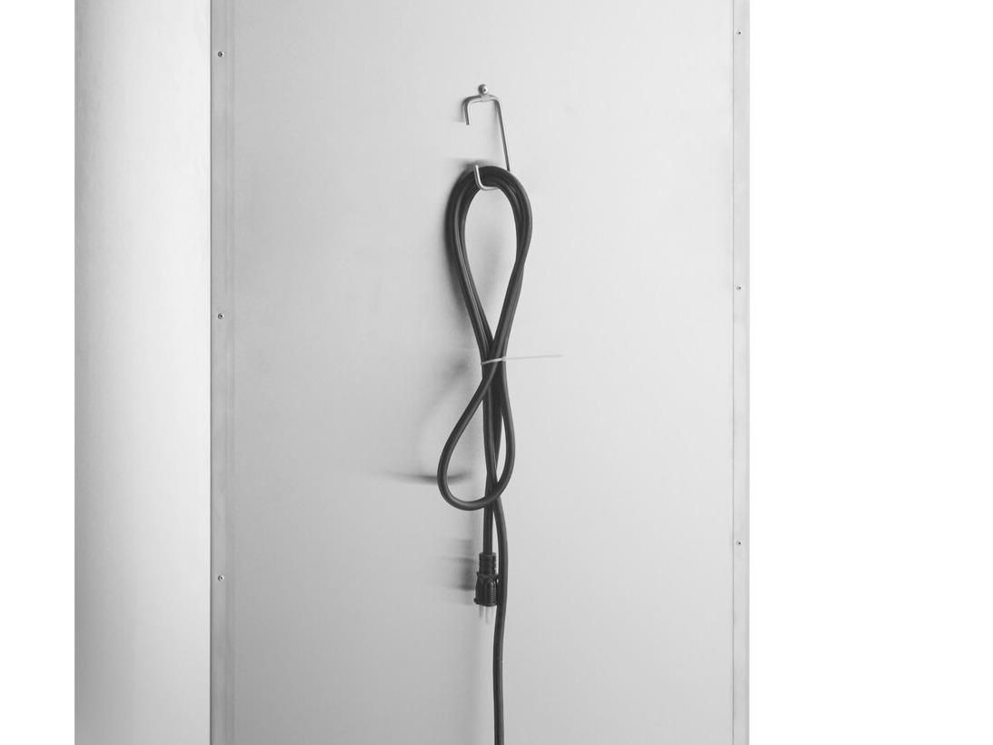 An integrated cord wrap on the back will keep the power cord off the floor and out of the way while you roll the cabinet.