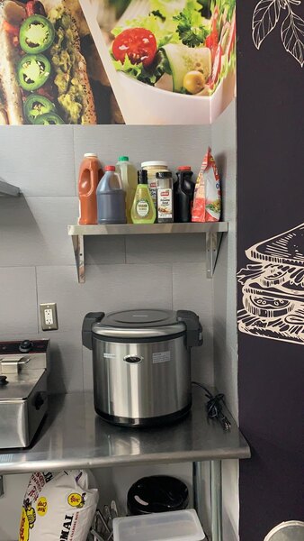 "This rice warmer holds our fried rice. It's nice because it keeps it fresh all day as well as hot. Having something sit in a container all day isn't ideal but this helps a lot."