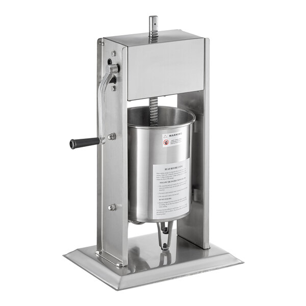 Whether you're making kielbasa, chorizo, or bratwurst, this stuffer has what it takes to give you consistent links or ropes of sausage. Its vertical design delivers reliable performance while taking up minimal counter space. Plus, it's easy-to-use and easy-to-maintain construction will keep your sausage-making operation running at maximum efficiency.