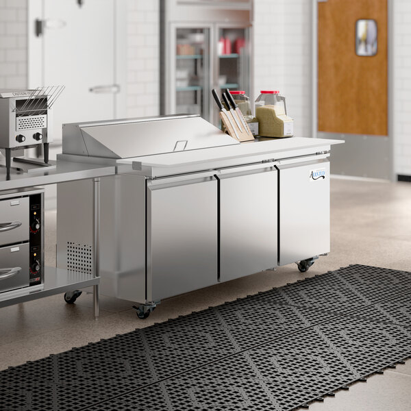 View All ItemsOptimize your back-of-house operations and better keep up with customer demands with this Avantco 70" 3 door stainless steel ADA height refrigerated sandwich prep table with workstation and extra deep cutting board!