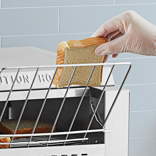 • Toasts up to 300 slices of bread or bagels per hour; fits two slices side-by-side on 10" wide belt