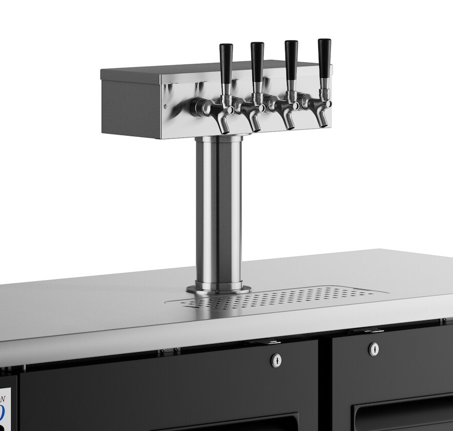 This unit features a four tap tower with a 10 1/4" faucet height that allows you to easily fill pint glasses and pitchers with local microbrews, international macrobrews, and everything in between. Standard four tap towers allow you to tap multiple kegs, offering more variety to your customer without the need for extra equipment.