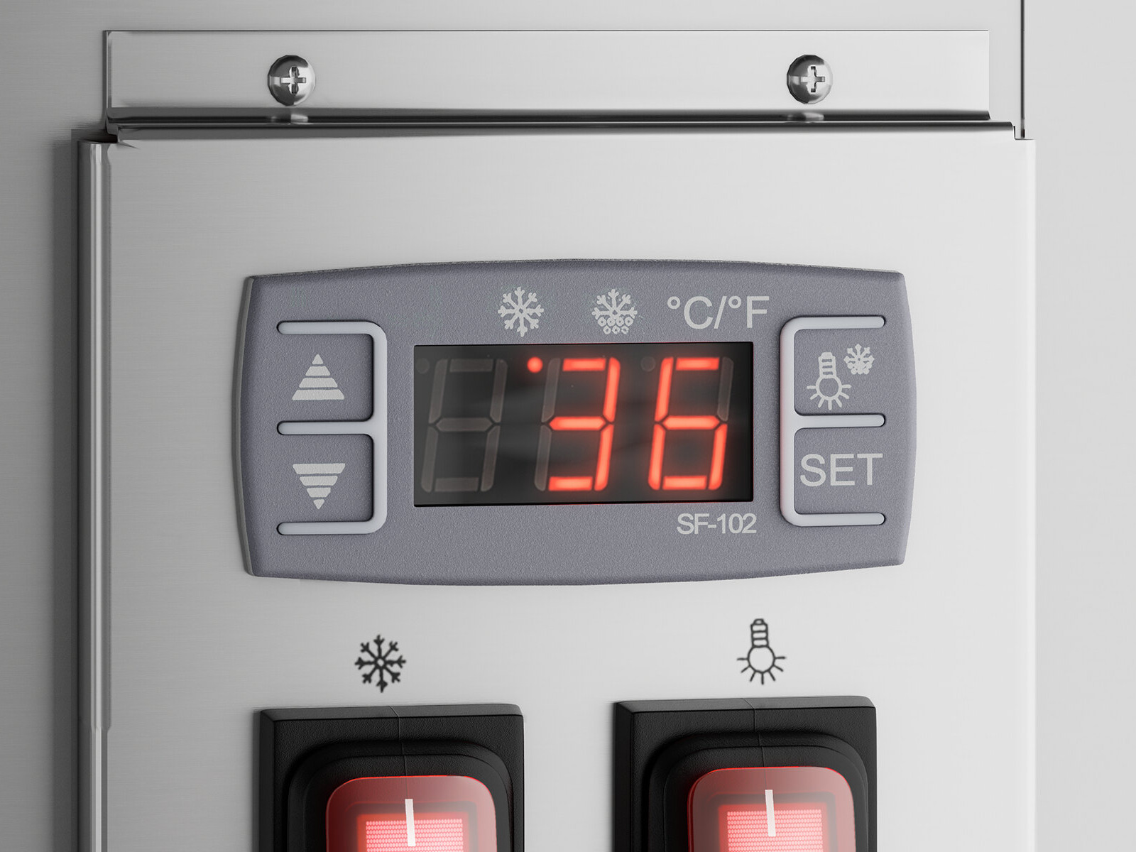 This unit operates using a 1 1/4 hp bottom compressor and R-290 refrigerant. This specialized refrigerant has an ozone depletion potential (ODP) of 0 and a global warming potential (GWP) of 3, making it an environmentally responsible choice for your business. This unit comes with a 7 3/8' long power cord and requires a 115V electrical connection for operation. Plus, a set of casters provides the unit with convenient mobility.