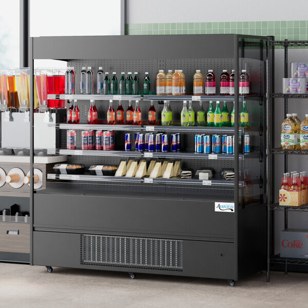 Display your grab-and-go items in style while keeping them chilled with this Avantco VOA-70-B 70 7/8" black extra deep vertical open air merchandiser.