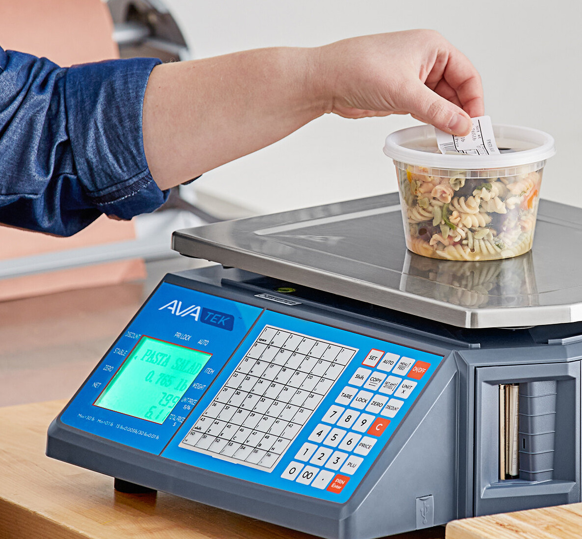 This legal for trade AvaTek PCSP30 30 lb. digital WiFi price computing scale with thermal label printer is perfect for delis, butcher shops, candy shops, and supermarkets!