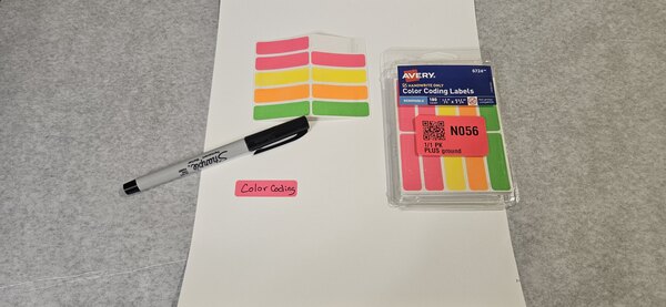 These small color-coded labels are cheap and good quality. They stick well to plastic, and don't smudge after writing on them. An all around Good sticker.