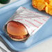 This Bagcraft 6" x 3/4" x 6 1/2" printed foil honeycomb hamburger bag is the perfect addition to any food service establishment. This practical, single-serve hamburger bag features an insulated foil construction that offers heat and moisture retention. Your customers can enjoy their sandwiches and burgers with long-lasting freshness, making it the perfect packaging solution for your establishment's to-go orders.