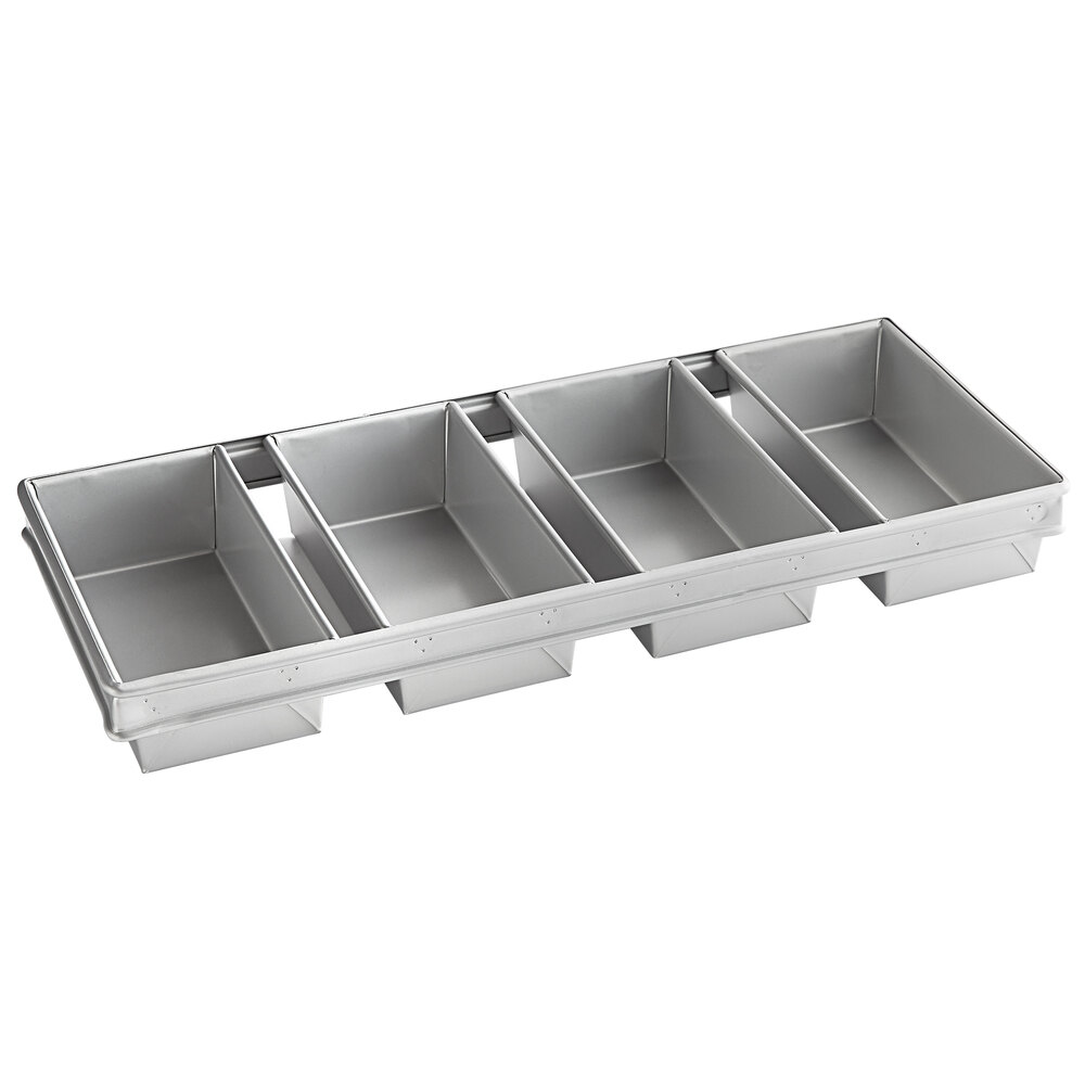 Designed with consistency and convenience in mind, this pan saves time by allowing you to bake up to four uniform bread loaves simultaneously, helping you streamline any commercial operation. Each individual pan yields a 1 1/2 lb. bread loaf for a total of four consistent results every time.