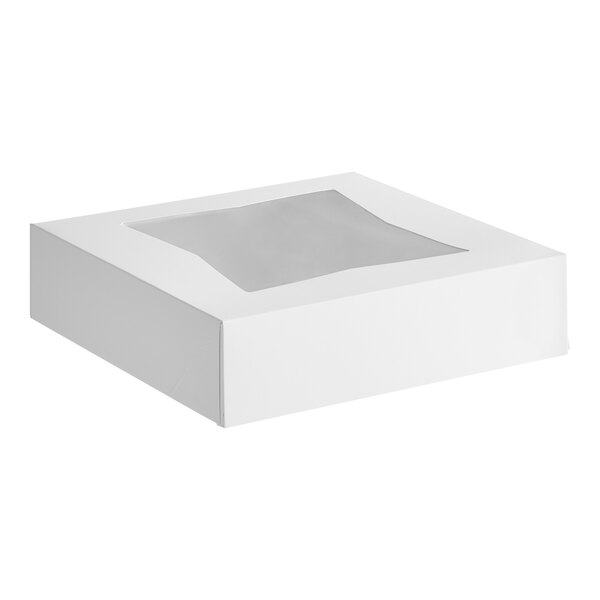 Baker's Lane 10" x 10" x 2 1/2" White Customizable Auto-Popup Window Pie / Bakery Box - 10/Pack