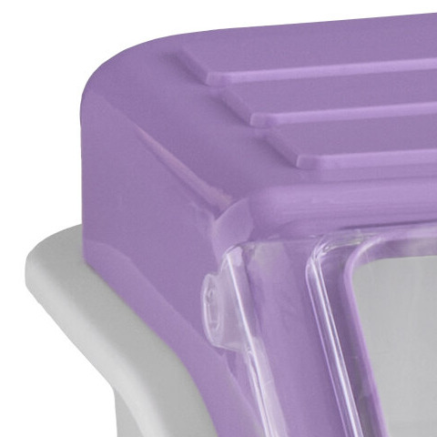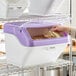 This ingredient bin features a purple lid which identifies allergen-free ingredients, making it easy to maintain health codes and honor guests' dietary requirements.