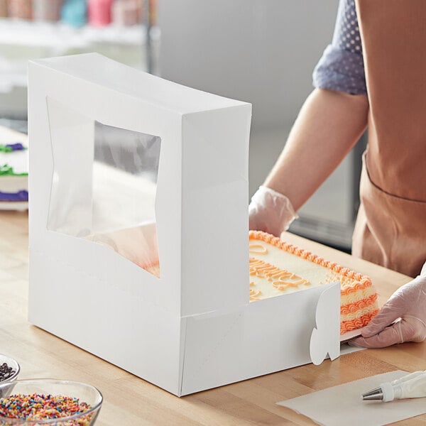 Baker's Lane 14" x 10" x 4" White Customizable Auto-Popup Window Cake / Bakery Box - 10/Pack