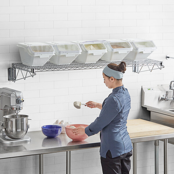 Organize your frequently-used baking ingredients with the help of this Baker's Lane 18" x 60" wall-mounted ingredient bin chrome shelving kit with 5 bins!