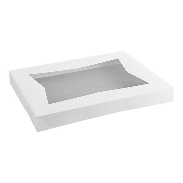 Whether you are packaging and selling pies, cakes, donuts, or your signature pastries, this box top is sure to do the trick! Boasting a crisp, white color and user-friendly design, this box top will help you pack and present baked goods quickly and neatly. It can be placed on a compatible bottom (sold separately) to cover a full sheet cake.