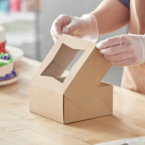 Baker's Lane 6" x 6" x 3" Kraft Customizable Auto-Popup Window Pie / Bakery Box - 10/Pack