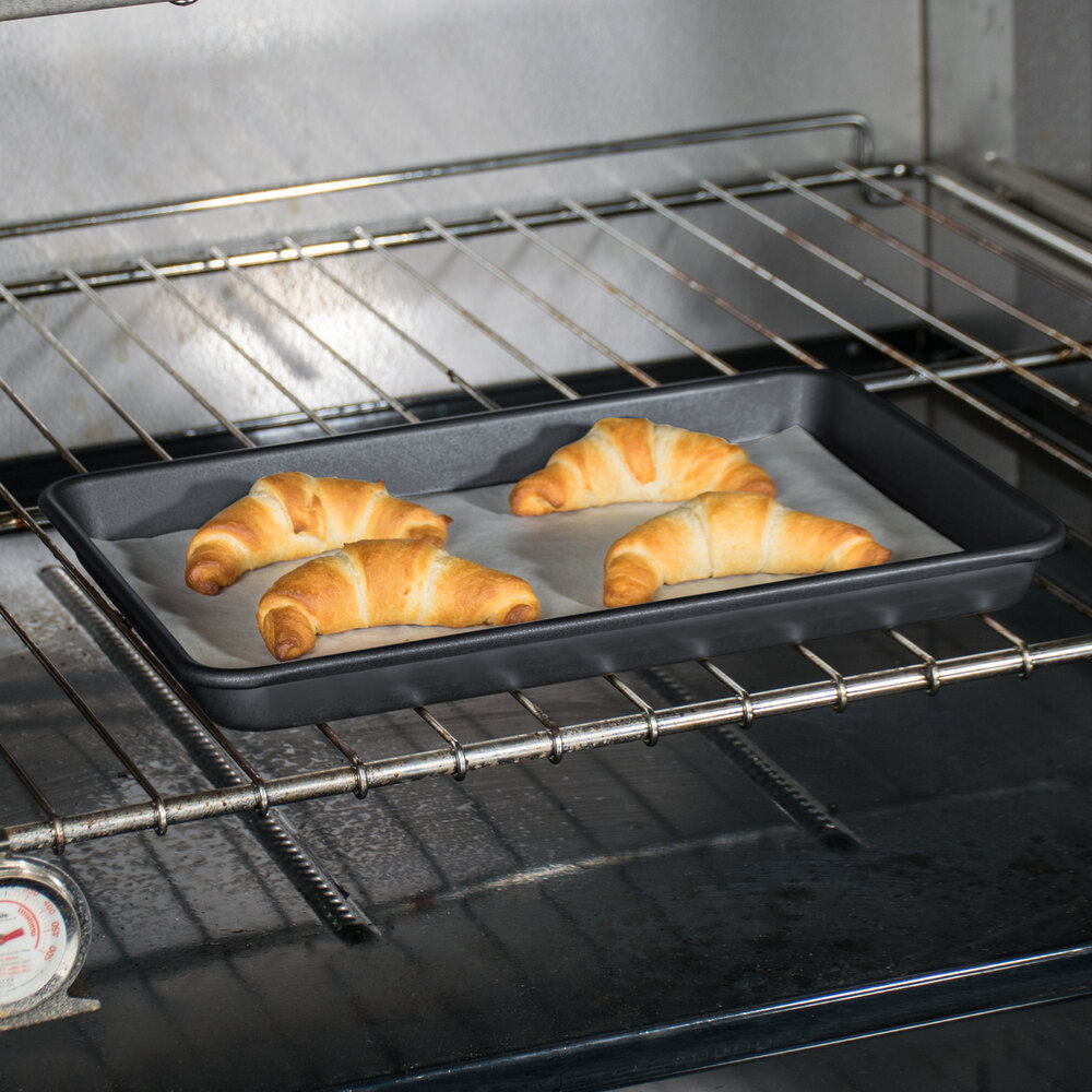 This pan is perfect for baking cookies or broiling other foods, and can also be used as a cooling area when you transfer your sweet treats to it after cooking. With a non-stick coating, this pan can streamline your operation and make clean-up a breeze!