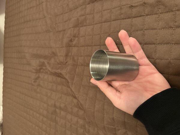 This Barfly brand 125ml stainless thimble measure container is quite sturdy and feels good in the hand. It will be a handsome addition to any measurement collection.