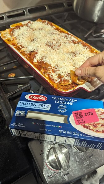 Customers appreciate the convenience and ease of use of this gluten-free lasagna pasta, noting its time-saving no-cook feature and its indistinguishable taste from traditional pasta. It's favored for making authentic lasagna effortlessly, with many highlighting how simple it is to prepare a delicious meal by just layering the ingredients and baking.