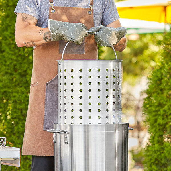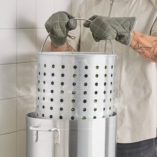 This steamer basket boasts a 60 qt. capacity, making it the perfect tool for blanching vegetables, rinsing pasta, draining foods, or even for canning purposes. Whether you're preparing a large batch of pasta or steaming vegetables for a crowd, this aluminum stock pot steamer basket is a must-have for any commercial kitchen looking to streamline their cooking processes.