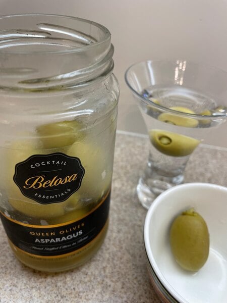 These premium, hand-stuffed queen olives are a uniquely perfect addition to your bar's signature dirty martini! They mingle wonderfully with the flavors of vodka or gin, vermouth, and olive brine to create a unique take on this beloved cocktail. Beyond crafting an elegant dirty martini, these asparagus stuffed olives are a staple to your brunch's exclusive Bloody Marys and other savory cocktails!