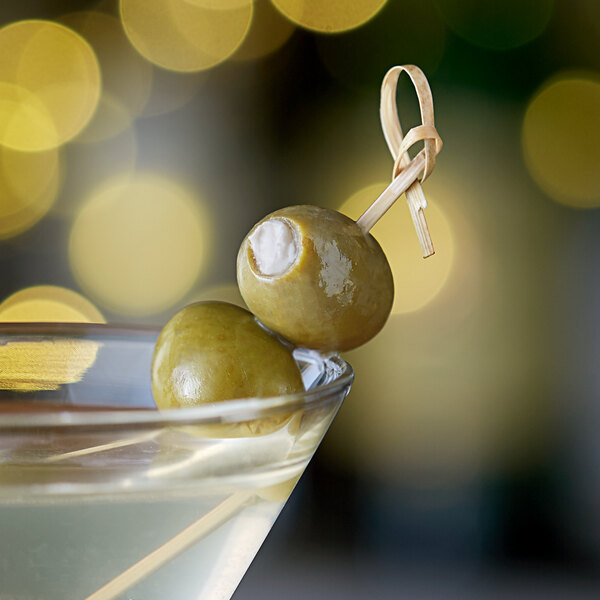 These premium, hand-stuffed queen olives are a perfect addition to your bar's signature dirty martini! They mingle perfectly with the flavors of vodka or gin, vermouth, and olive brine to create a unique take on this beloved cocktail. Beyond crafting an elegant dirty martini, these olives are a staple to your brunch's exclusive Bloody Marys and other savory cocktails!