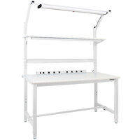 Equip your maintenance staff or industrial workshop with this BenchPro Kennedy Series 24" x 60" ESD LisStat laminate top adjustable workbench with white frame and round front edge! Featuring a 1 3/16" laminate top, this workbench provides a perfect space for small projects and maintenance work. The top's smooth, rounded front edge ensures a comfortable working space for those leaning on or over the workbench for long periods of time. This model even features an ESD design, meaning the laminate top dissipates static electricity for sensitive electronic production applications.