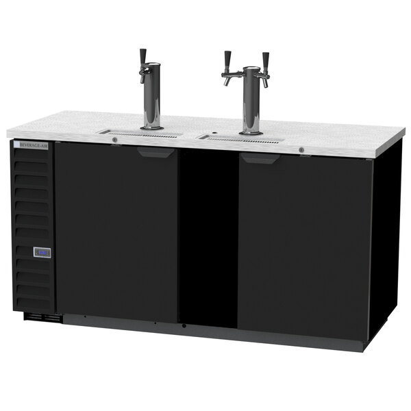 This kegerator makes it easy to serve your patrons cold, refreshing, perfectly drafted beer. This kegerator can hold (3) 1/2 size kegs. Boasting a durable, steel construction with a wear-resistant black vinyl finish, this kegerator withstands the daily demands of your busy bar, pub, or catered event. The top is made of heavy-duty stainless steel for easy cleaning and maintenance. Plus, the drip tray helps contain liquid for a clean, mess-free operation.