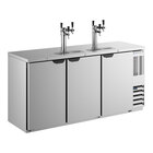Featuring 2 tap towers with 3 faucets each, this kegerator makes it easy to serve your patrons cold, refreshing, perfectly drafted beer. Thanks to its heavy-duty forced air refrigeration system, this kegerator can hold (3) 1/2 size kegs. An all-stainless steel tower design and antimicrobial tubing allow you to serve beer, wine, or coffee without the need to retrofit later, and the tubing protects against common beverage-spoiling bacteria. It requires a 115V electrical connection. The manifold / distributor and beer lines are included.