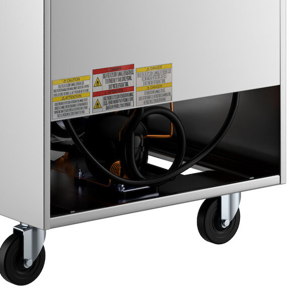 For easy maintenance, this unit features an automatic defrost system. The refrigeration system itself features an automatic condensate evaporation system for greater energy efficiency and a forced-air design that ensures even temperatures throughout the unit. You can count on food safety with this unit since it holds product at 0 degrees Fahrenheit. In addition, this unit uses environmentally friendly R290 refrigerant in a self-contained refrigeration system to help you meet your goals of making your foodservice business more eco-friendly. The robust 1/2 hp compressor provides ample power for exceptional performance. This freezer requires a 115V electrical connection for operation and includes an 8' long cord and plug set.