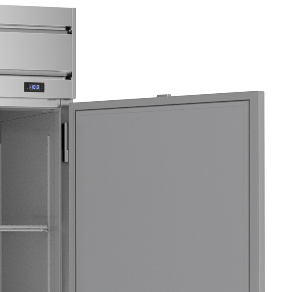 With a 1/2 hp compressor, the refrigeration system uses R-290 refrigerant to maintain temperatures at or near -10 degrees Fahrenheit. This specialized refrigerant has an ozone depletion potential (ODP) of 0 and a global warming potential (GWP) of 3, making it an environmentally responsible choice for your business. For even airflow distribution inside the cabinet, the freezer boasts a down draft airflow system.