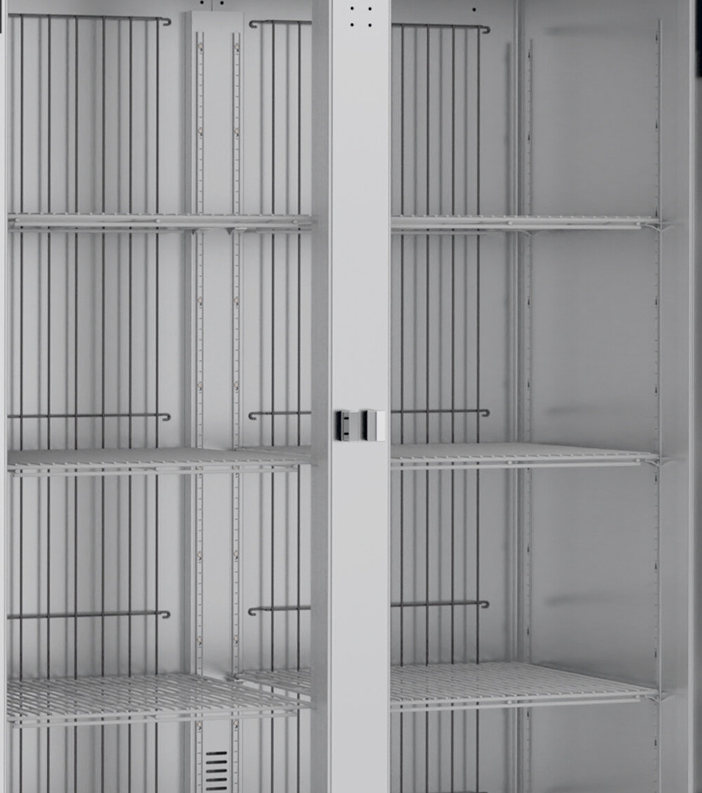 - Solid, self-closing doors with stay-open features, magnetic gaskets, and locks; 6" legs