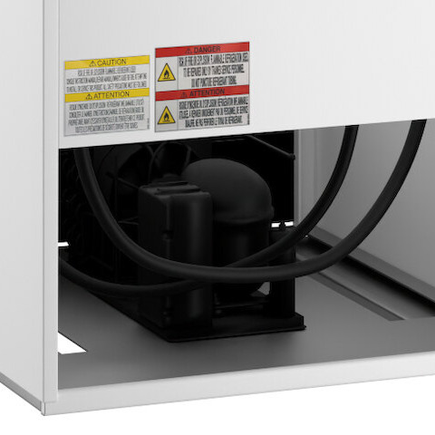 With a 1/4 hp compressor, the unit's refrigeration system uses R290 refrigerant to maintain temperatures between 36 and 38 degrees Fahrenheit. This specialized refrigerant has an ozone depletion potential (ODP) of 0 and a global warming potential (GWP) of 3, making it an environmentally responsible choice for your business. Operation is made easy with the full electronic control.
