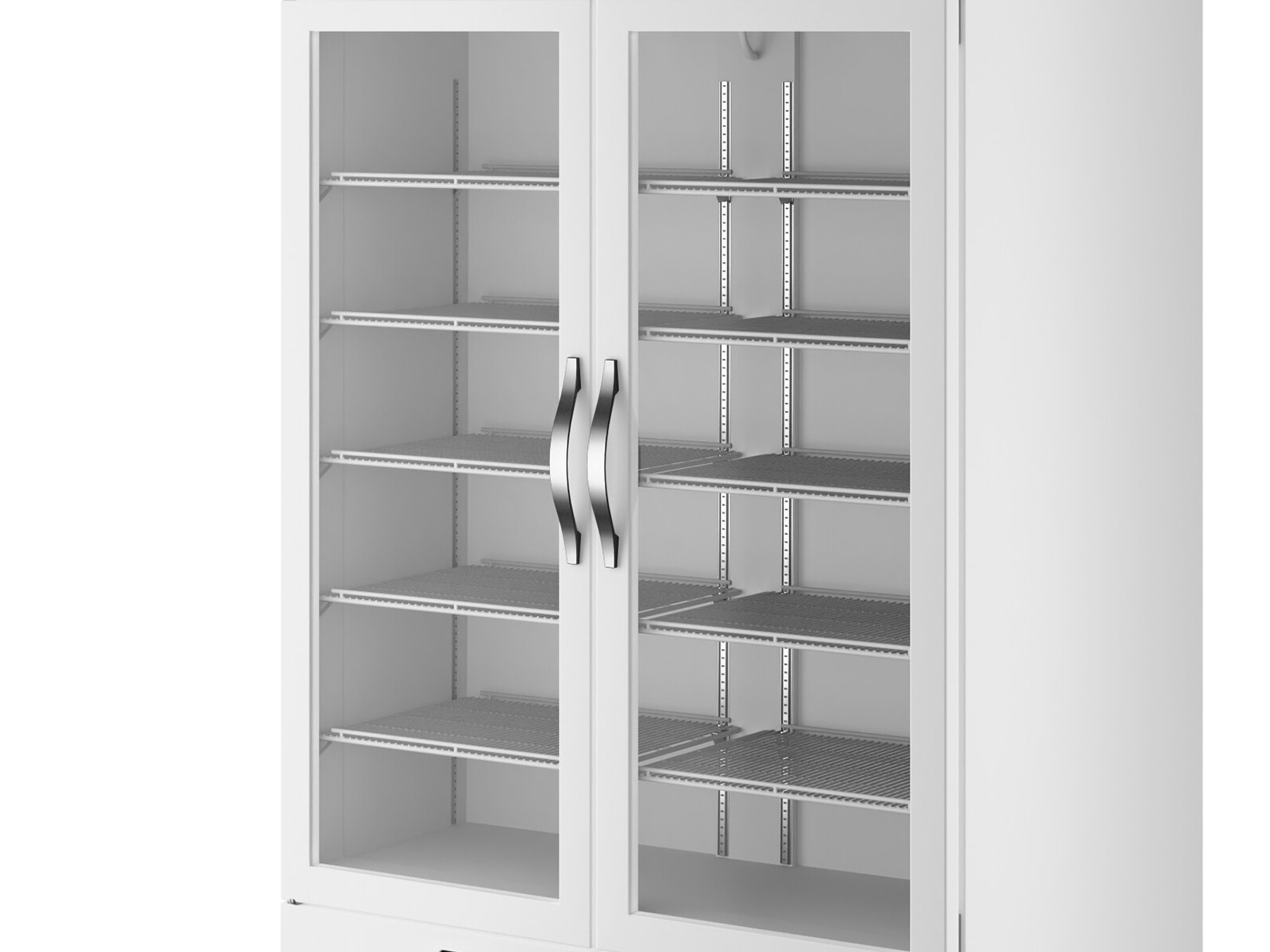 Two double pane glass doors provide users with the ability to easily view refrigerated foods without needing to open each door, and both the inside and outside panes are tempered for added safety. Plus, the LED lighting makes it easy to see product while providing more even lighting than comparable fluorescent models. Best of all, the lighting also is more economical in the long run as it's more energy-efficient, throws off less heat, and lasts for much longer periods of time.