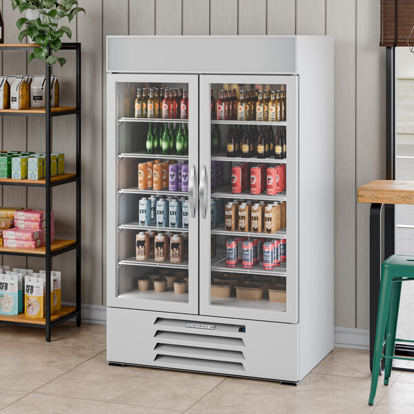 This refrigerator is the perfect solution for those seeking to add cold storage and display to their restaurant, diner, or self-service convenience stop. The interior of this unit keeps product temperatures between 36 and 38 degrees Fahrenheit and features 45 cu. ft. of cold storage. The exterior of this refrigerator is durable, clean-looking, and features a heavy-duty white steel finish. This unit requires a 115V electrical connection for operation.