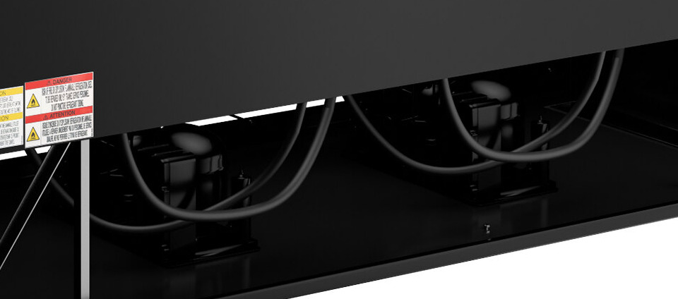 A whisper-quiet refrigeration system helps keep a quieter front-of-house setting for your customers, while the bottom-mounted design keeps your compressor away from the warm air that rises in your kitchen and is more conveniently located with a one-piece grill for easy maintenance. An added benefit to a bottom-mount refrigeration system is that it raises the interior floor of the unit to reduce bending and lifting when you are loading or unloading food.