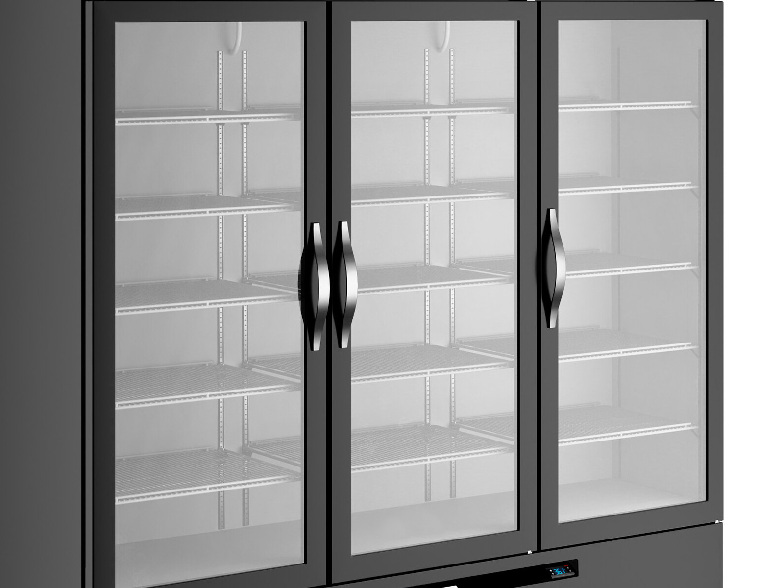 Built-in LED interior lighting offers further ease-of-use by allowing for quick identification of the items you need, in addition to providing brighter and more even lighting than traditional fluorescent models. The lighting is more economical in the long run as it's more energy-efficient, throws off less heat, and lasts for much longer periods of time. The lowE double panel thermal insulated glass doors minimize energy waste and provide excellent product visibility. This multi-door unit has one left hinge and two right hinges.