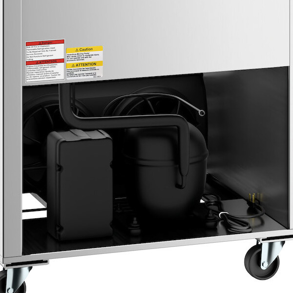 The bottom mounted system raises the interior floor of the unit so that your employees don't need to bend and lift as much to load and unload product! Plus, since the top of the unit is solid you can use it as additional storage space for food pans, oven mitts, and more. Plus, four 3" casters, two with brakes, are included so you and staff members can easily move the unit for cleaning.